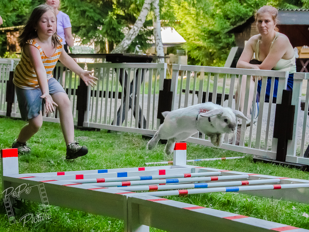 Dumbice je oblíbenec mé dcery. Vyhlídla si ji již v hnízdečku a přes různé protesty s ní začala cvičit králičí hop. Dumbice je velmi tvrdohlavá, má obrovský skokanský potenciál, ale proč by ho ukazovala před mrňousem Kájou. Ovšem Kája (7 let) se nedá a občas Dumbici vyburcuje k dobrému výkonu. Takže například letos v létě spolu skočili Elitní třídu ve skoku dalekém a tím se Dumbice stala naší chovnou samičkou.
